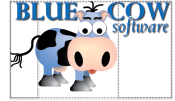 - The traditional, serif typeface is at odds with the simple/cartoon style of the graphic, and the subordinate use of lowercase italics for ‘software’ diminishes what Blue Cow does.